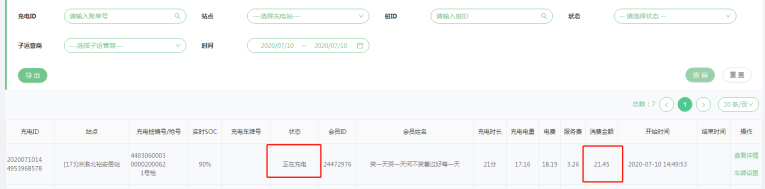 这个是橙电桩按理应该不会出现盛弘桩出现的偷电问题,但现场发现车辆在充电有电量但司机的手机端没有相应充电记录。